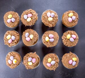 Looking for easy Easter baking ideas for kids? These Easter cupcakes are the perfect simple bake: fun to make, delicious to decorate and guaranteed to satisfy any chocolate craving. Soft, fluffy chocolate muffins topped with rich chocolate buttercream and finished with mini chocolate eggs, they’re an ideal Easter holiday activity, a quick afternoon treat or a go‑to chocolate cupcake recipe for spring.