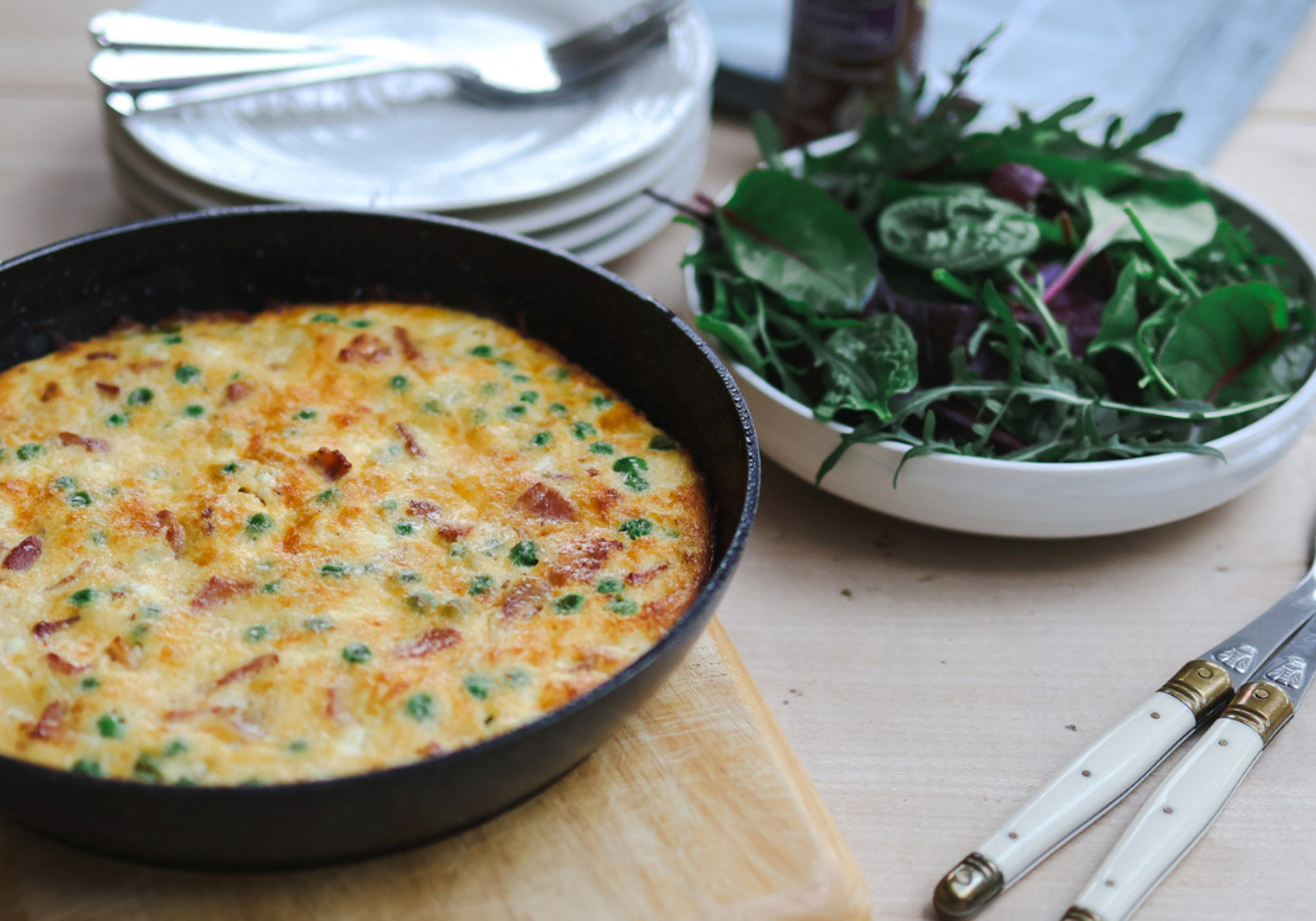 A frittata is one of those wonderfully unfussy dishes that still feels like a treat, and this high protein version brings together delicious smoky bacon, sweet pops of peas, cottage cheese and pecorino. The Mellow Yellow Cold Pressed Rapeseed Oil gives you that gorgeous golden finish thanks to its naturally high smoke point, making it ideal for frying without any bitterness.